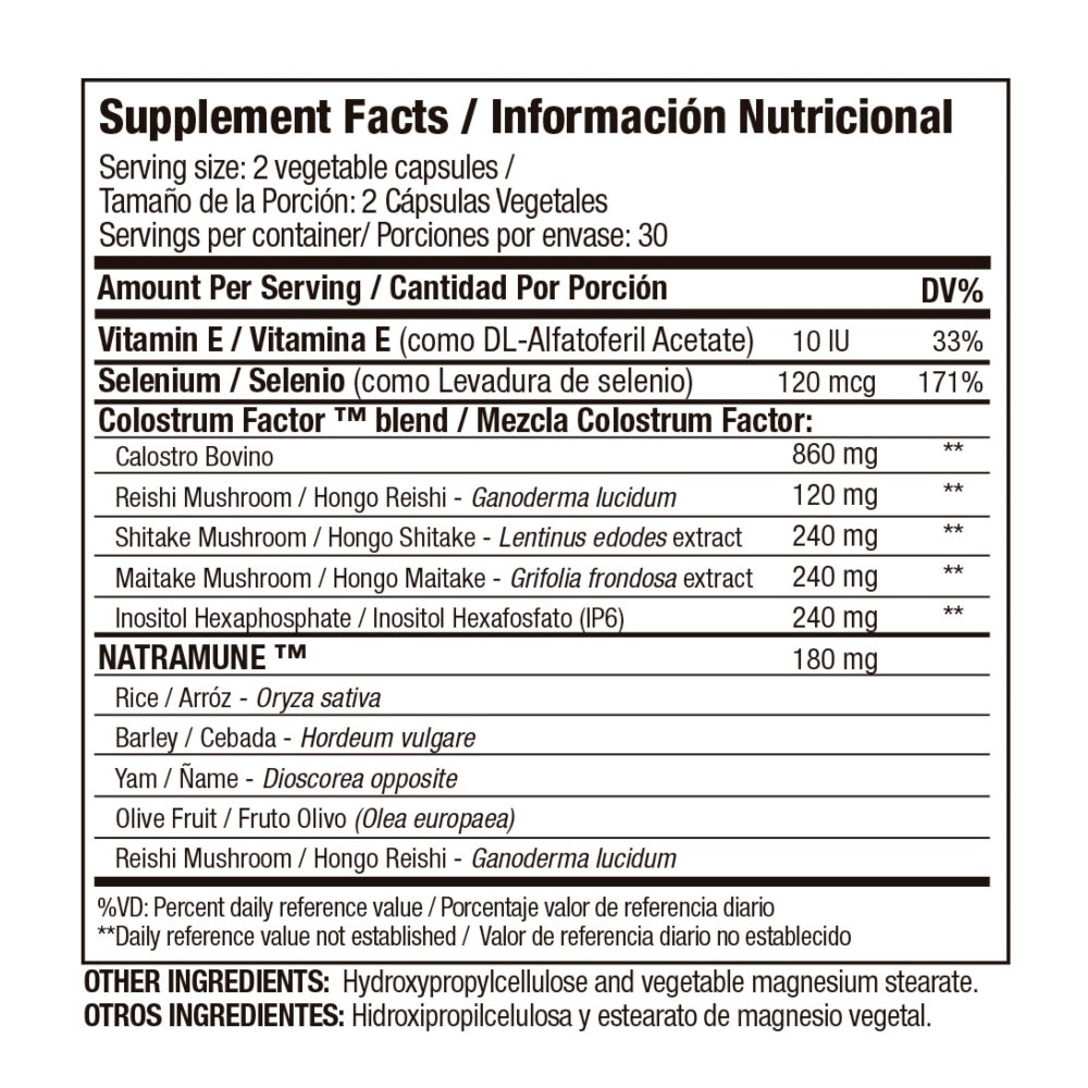 Calostro bovino adicionado con antioxidantes ( hongos Shitake, Maitake y Reishi), inositol hexafosfato y Natramune (PDS2865)