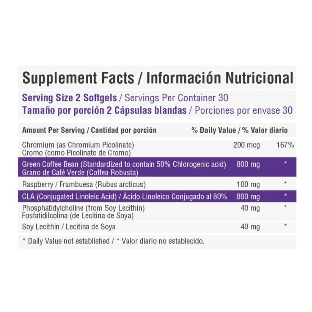 - 800 mg CLA (Ácidos Linoleicos Conjugados).