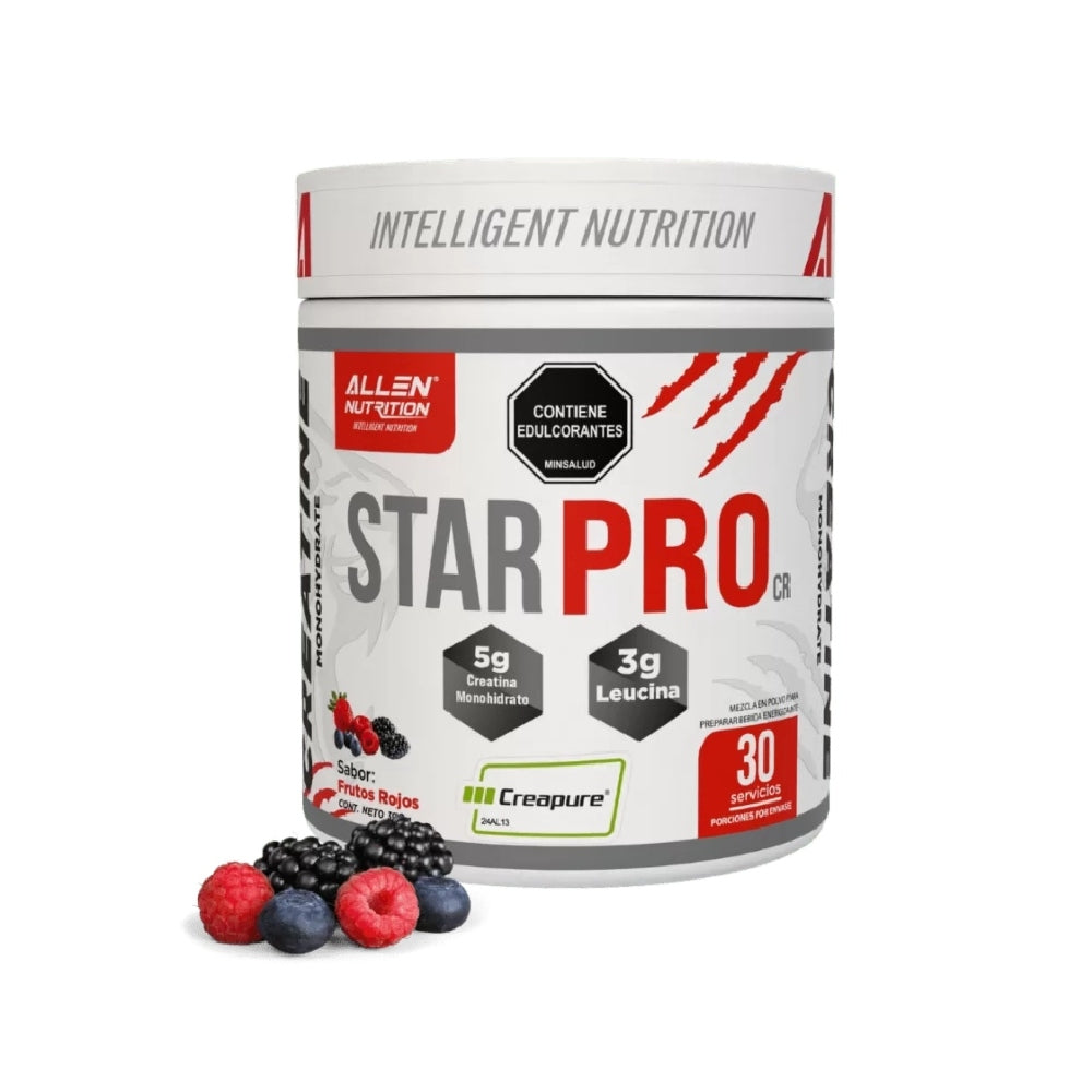 La Creatina Star Pro de Allen Nutrition Con 5 gramos de creatina monohidrato por porción, esta creatina cuenta con el respaldo de Creapure.